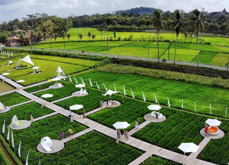 Destinasi ini menawarkan pengalaman bersantai di tengah hamparan sawah padi yang hijau. Dengan berbagai ayunan dan spot foto yang unik, Svargabumi memberikan ketenangan ala pedesaan dengan latar belakang perbukitan yang indah.