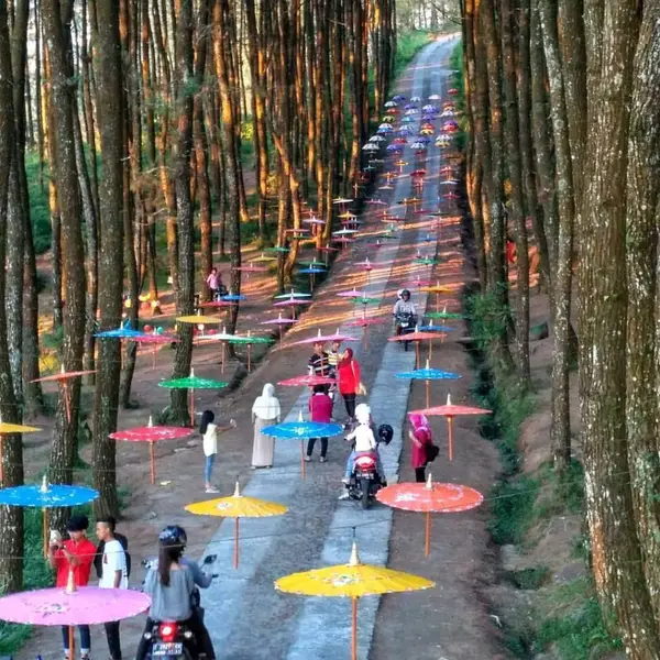 Wisata yang berlokasi di Pakis, Magelang ini menawarkan hutan pinus yang tenang dengan udara sejuk khas pegunungan. Tempat ini populer dengan berbagai spot foto unik seperti rumah pohon dan jalan lurus di antara deretan pohon pinus. Suasananya yang damai sangat cocok untuk piknik atau sekadar jalan santai.